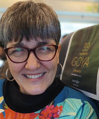 Azucena Baños, nació en Murcia y, como ella misma dice, además de ser madre de una señora de 21 años y un preadolescente de 11, es montadora de cine y tv desde hace 30 años. Comenzó como fotógrafa pero muy rápidamente se enganchó con el montaje, profesión que no ha dejado de ejercer desde entonces. Sobre todo ha montado series de televisión, cortometrajes y largometrajes. Es socia de CIMA (Asociación de mujeres cineastas y de medios audiovisuales) y desde 2023 preside AMAE, Asociación de Montadores Audiovisuales de España que trabaja para dar valor y visibilidad a la profesión de montador o montadora.